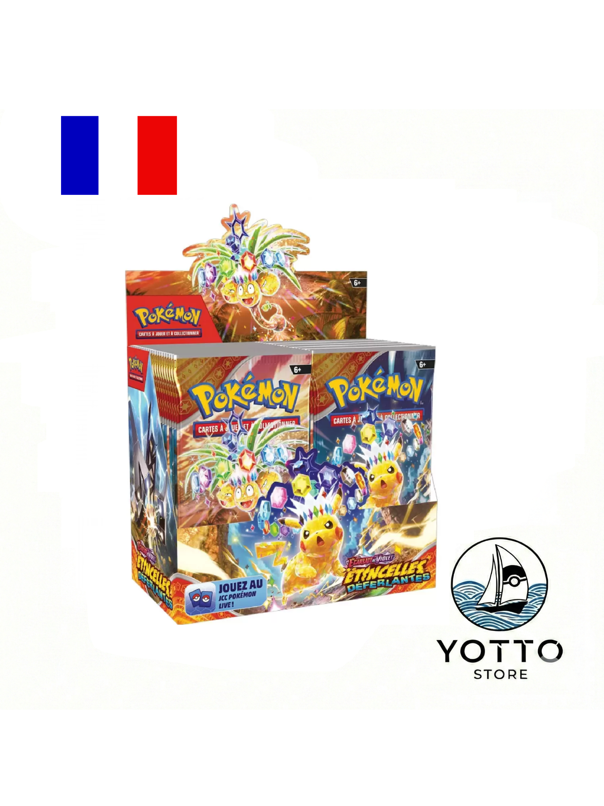 Une boite de booster (display) Pokémon « Étincelles Déferlantes » contient 36 boosters de 10 cartes. Boosters en français.