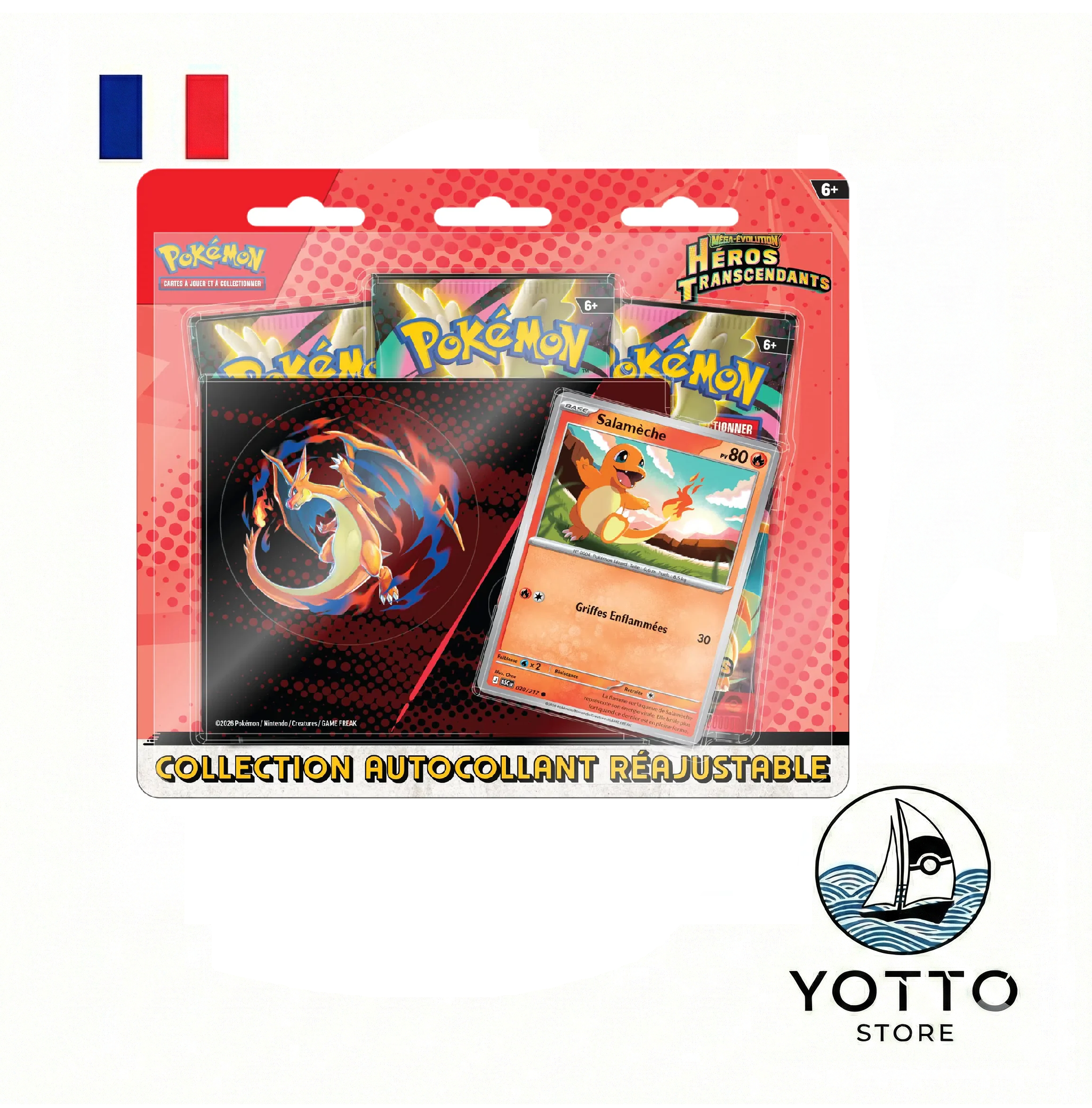 Contient 3 boosters Méga évolution ME02.5 Héros Transcendants + une carte promo Salamèche